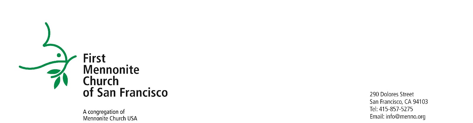 On behalf of the congregants of First Mennonite Church of San Francisco –