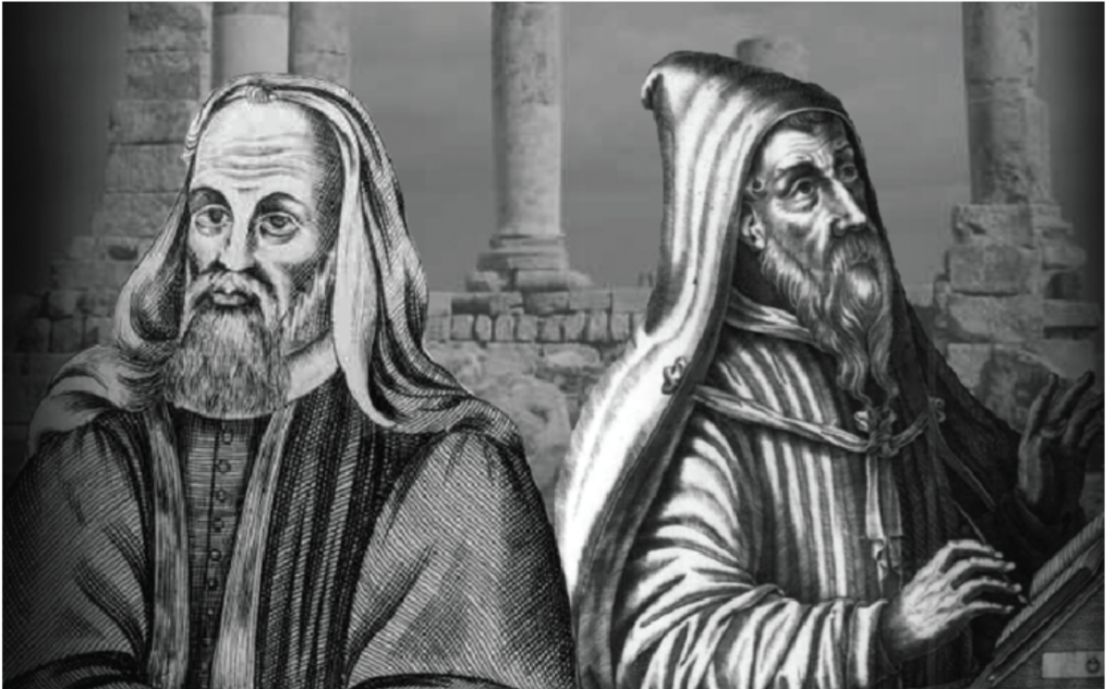 Above: Pelagius and Augustine, who argued over original sin in late 4th and early 5th centuries.