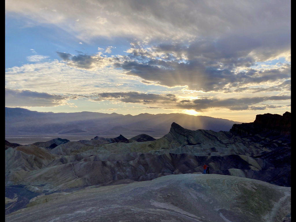 But the next morning, the sky now clear, all such thoughts were dispelled. We marveled for the next 48 hours at the vastness of the desert, at the mountains of rock that the light painted on with different colors all day long, at the sheer glorious grandeur of the place. Years ago, I heard someone describe Death Valley as “the bones of the earth,” and that seemed so true. In Death Valley, everything falls away but the rocks that give our landscapes structure but that are often obscured by vegetation and soil. These rocks, now revealed, were formed up to 1.7 billion years ago. 500 million years ago, Death Valley was a warm, shallow sea, and about 250 million years ago, the mountains began being formed by the shifting of tectonic plates. How can our puny brains even take in such vast stretches of time?